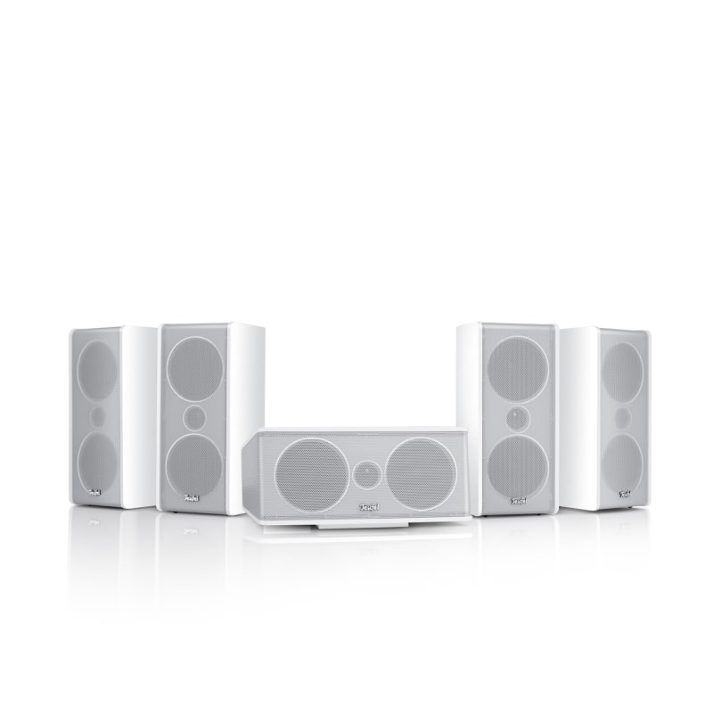 - 5 identische 2-Wege-Boxen mit je 2 Mitteltönern für realistischen, leistungsstarken Raumklang