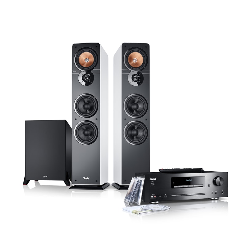 - Inkl. Teufel KOMBO 62 CD-Receiver mit Fernbedienung, 200 Watt, Bluetooth mit aptX und NFC, USB-Playback uvm.