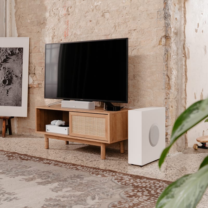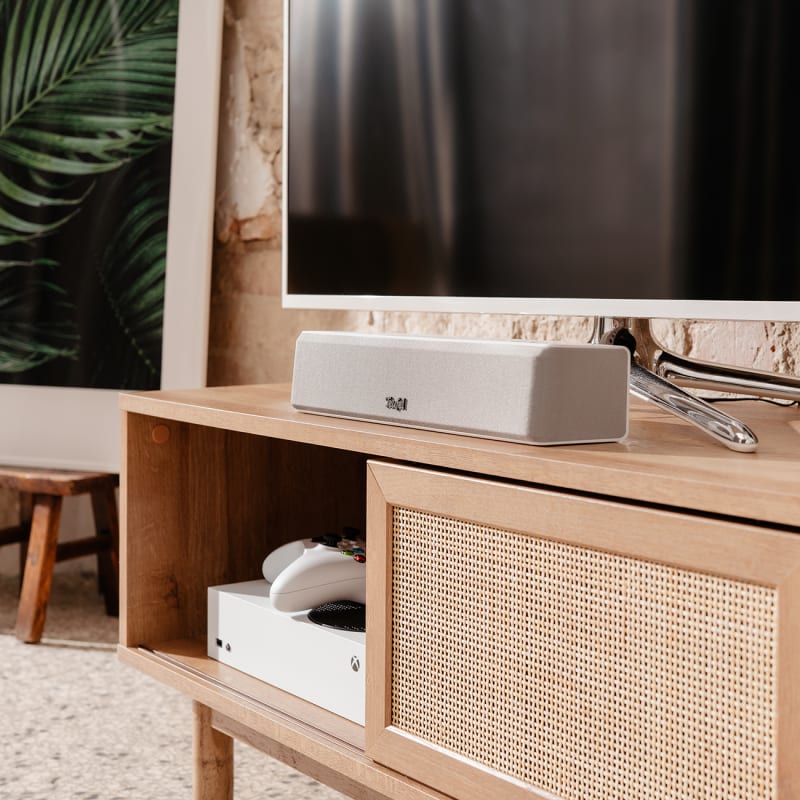 Die CINEBAR ONE kommt zusätzlich mit Subwoofer: für höhere Pegel in größeren Räumen. Wie die CINEBAR ONE ist sie eine auf das Beste reduzierte Soundbar, die schon beim ersten Ton über sich hinaus wächst. Dank Dynamore Ultra erlebst du virtuellen Surround Sound – am TV-Gerät, PC oder Notebook.