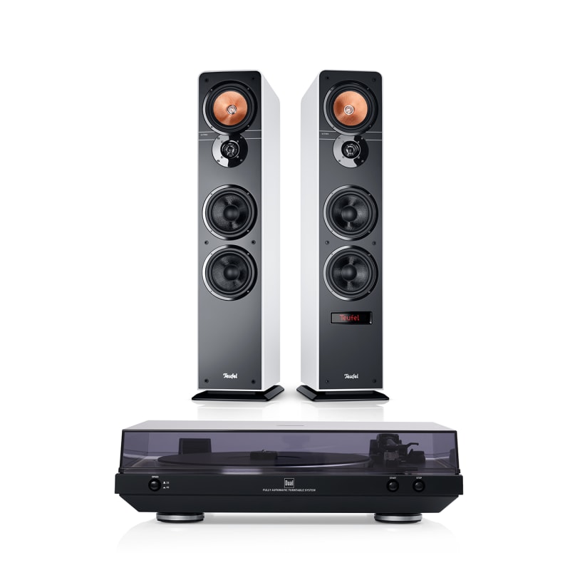 Entdecke deine Lieblingsplatten neu: Das Standlautsprecher-Paar ULTIMA 40 Aktiv im Paket mit dem komfortablen Vollautomatik-Plattenspieler DUAL DT 400 USB. Legendärer Sound trifft auf cleveren Tonrillen-Surfer. Spare gegenüber dem Einzelkauf.